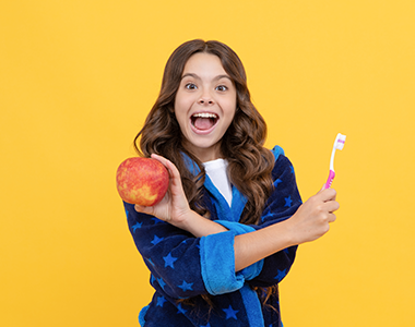 So, when it comes to eating and brushing, the game is to wait at least 20 minutes after eating before brushing.
